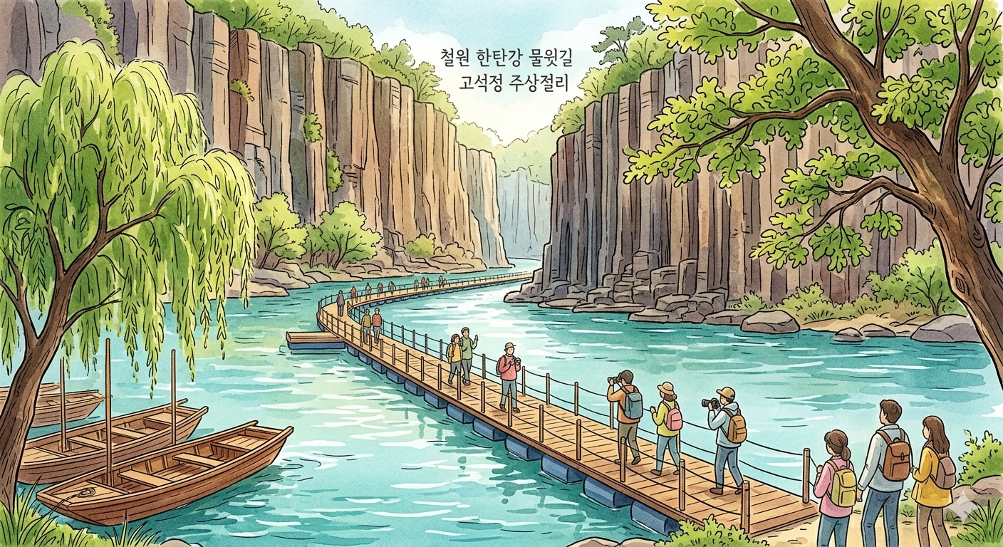 - 고석정: 한탄강 한복판에 우뚝 솟은 20m 높이의 거대한 기암봉입니다. 조선 시대 의적 임꺽정이 활동했다는 전설이 내려오는 곳으로, 물윗길에서 바라보는 고석정의 뒷모습은 오직 이 기간에만 볼 수 있는 선물입니다.