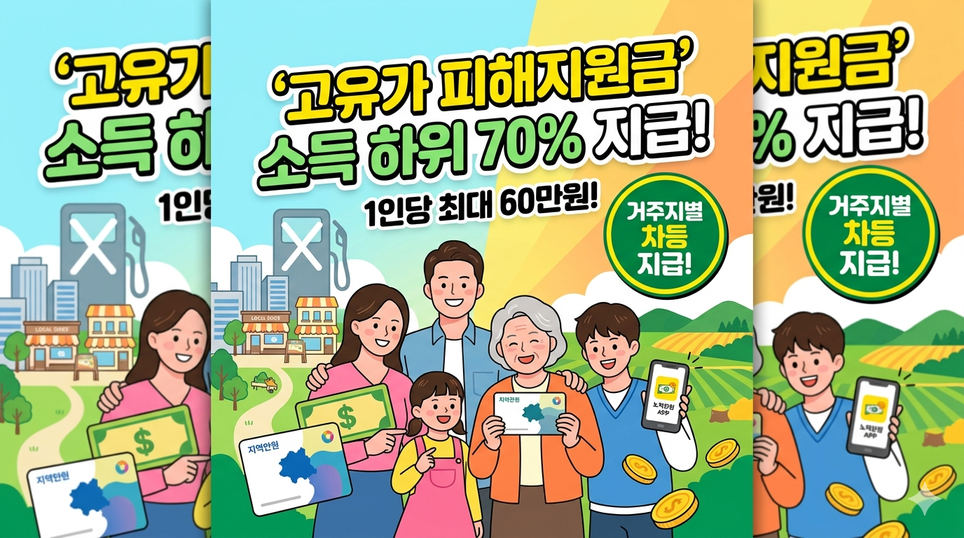 이러한 서민층과 중산층의 가중된 경제적 부담을 덜어드리기 위해 정부에서 매우 반가운 대책을 확정 발표했습니다. 바로 소득 하위 70% 이하 국민을 대상으로 1인당 최소 10만 원에서 최대 60만 원까지 지급하는 '고유가 피해지원금' 제도의 신설입니다.