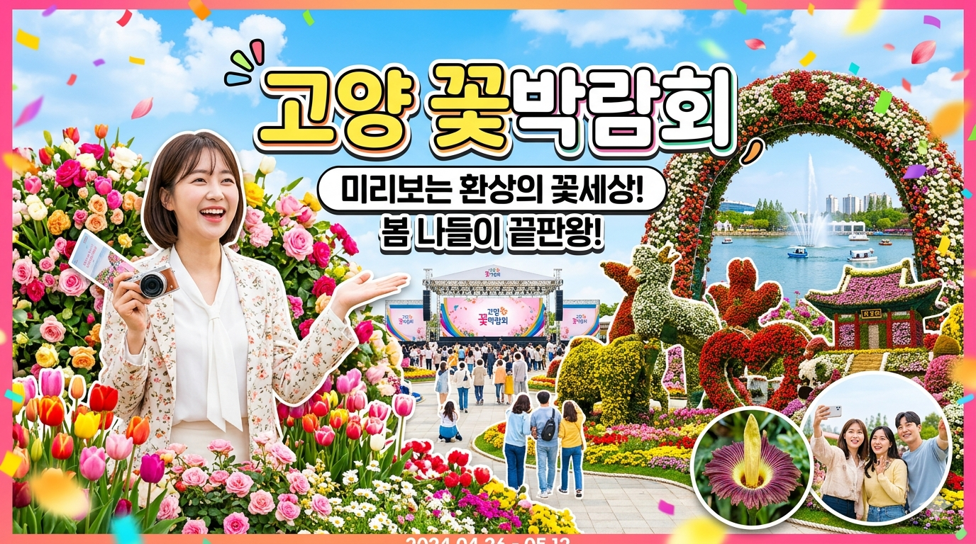 살랑이는 봄바람과 함께 드디어 기다리던 국내 최대 규모의 꽃 축제, **'2026 고양국제꽃박람회'**가 화려한 막을 올립니다. 일산 호수공원 일대를 형형색색의 꽃들로 수놓는 이번 박람회는 가족, 연인, 친구와 함께 인생 사진을 남기기에 더할 나위 없는 장소인데요.